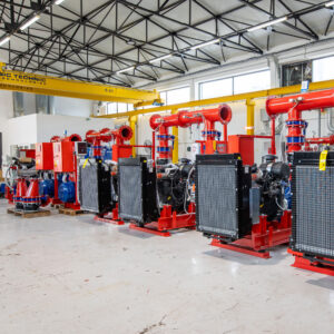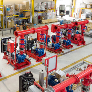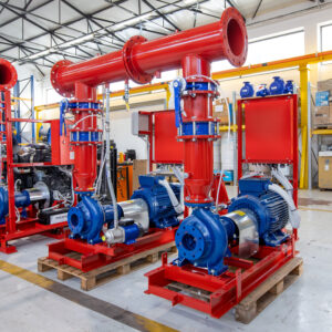 - Main fire pump(s) – electric or diesel, sized according to flow/pressure demands
